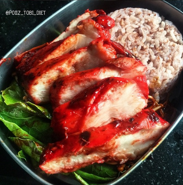 Red Chicken Rice Menu Clean, delicious, soft lunch. Recipe from member number 1860279, member of Pantip.com website. Marinate chicken breast with sauce and fish sauce. When finished, grill it. Naturally delicious aroma.